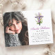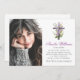 Elegant bereavement sympathy thank you card featuring a watercolor cross with purple flowers and your custom photo and thank you message.