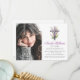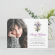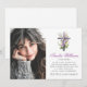 Elegant bereavement sympathy thank you card featuring a watercolor cross with purple flowers and your custom photo and thank you message.