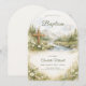 This elegant watercolor baptism invitation features a peaceful nature landscape with a wooden cross, white doves, flowing river, and wildflowers. Inspired by the beauty of faith and God’s creation, this design creates a serene and meaningful way to invite loved ones to celebrate a special baptism. Perfect for boys, girls, or gender-neutral baptisms, the neutral tones and classic script typography create a timeless keepsake invitation for this sacred occasion.