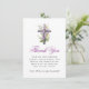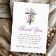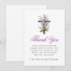 Baptism or christening thank you card featuring a watercolor cross with purple flowers and your custom thank you message.