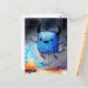 Watercolor Cute Blue Monster and a Campfire Postcard