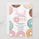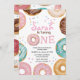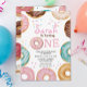 Make your little one’s first birthday extra special with this cute custom doughnut-themed invitation! Featuring colourful frosted doughnuts, sprinkles, and playful pastel pink and brown typography, this invitation is fully customisable with your child's name, party date, and details. Perfect for a doughnut-themed birthday party!. Editable text to fit your event details. Available as printed invitations or digital downloads