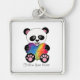 Watercolor Cute Panda With Rainbow Heart Key Ring
