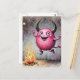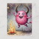 Watercolor Cute Pink Monster and a Campfire Postcard