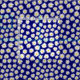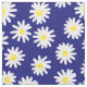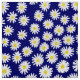 A repeating pattern made up of many hand painted daisies on a deep navy blue background.