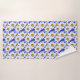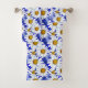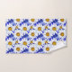 Towel set in a watercolor pattern of white daisies with golden yellow centres, on a background in shades of denim blue