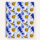 Journal in a watercolor pattern of white daisies with golden yellow centres, on a background in shades of denim blue
