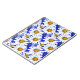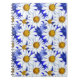 Notebook in a watercolor pattern of white daisies with golden yellow centres, on a background in shades of denim blue