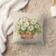Watercolor daisy bouquet in a brown basket on soft brown textured background.