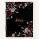 Watercolor Dark Moody Roses Monogram Black Notebook
