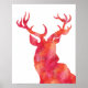 Bright Watercolor deer Christmas print of a deer silhouette pink and red watercolor.