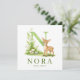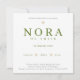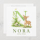 A soft and natural birth announcement card featuring a deer in a fresh green woodland style.