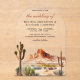 Amaze your guests with this elegant desert theme wedding invite featuring a beautiful rustic desert landscape and modern typography.