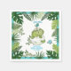 Complete your roar-some celebration with our Watercolor Dino Egg Hatch Boy Baby Shower Napkins! These charming napkins feature a delightful watercolor illustration of a sweet baby dinosaur just breaking free from its egg, joined by a cheerful little bird and a cute blue dino car. The "IT'S A BOY!" message is highlighted, framed beautifully by lush tropical leaves that add an adventurous jungle vibe.