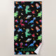 Watercolor Dinosaur Astronauts In Space Black Beach Towel