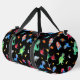 Watercolor Dinosaur Astronauts In Space Black Duffle Bag
