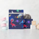 Watercolor Dinosaur Astronauts In Space Blue Wrapping Paper