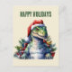 Watercolor dinosaur Christmas Santa Holiday Postcard