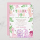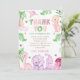 Watercolor Dinosaur Girl 1st Birthday Party Thank You Card
