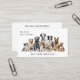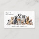 A dog and pet care services business card. Perfect for a dog walker, dog boarder, dog sitter or doggie day care. On a white background, watercolor images of a pack of nine dogs including a beagle, Dalmatian, labrador, border collie and German shepherd are shown. Personalise by adding your business and contact details to the front and back.