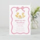 Celebrate the parents-to-be with this charming watercolor baby shower invitation featuring three adorable yellow ducklings splashing in playful puddles. This whimsical design is framed by a delightful wavy yellow border and topped with a sweet, hand-painted yellow bow, making it perfect for a gender-neutral or 'splashing into parenthood' theme.
