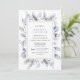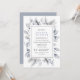 Elegant bridal shower invitations with a steel blue botanical frame. Airy white background with a blue-grey colour on the reverse side. Ideal for a winter bridal shower.