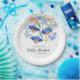 Watercolor Dusty Blue Wildflower Bouquet Baby Show Paper Plate