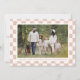 Send warm wishes with this watercolor Christmas photo card featuring your horizontal family photo framed by a cream border and a dusty rose gingham background. Customise the front with a greeting and family name in dusty rose lettering, and add a vertical photo and holiday message on the back for a charming and nostalgic finish.