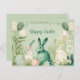 This Easter greeting cards features a delightful watercolor illustration of a cute Easter rabbit surrounded by spring flowers. The playful design is rendered in a charming line art style against a soft, light green background, giving it a fresh and vibrant look. These cards are perfect for sending warm wishes to loved ones during the Easter season. This card is customisable, you can edit each text or to delete them if you prefer to hand-write.