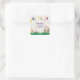 Colourful Easter eggs in a watercolor effect hang from the top of this adorable Easter party sticker. A grassy outdoor scene with an easter bunny, an easter basket, eggs, and a chick creates a base for the image. The background is a soft colourful wood pallet. Use as favours, on gifts, or as envelope seals to make a great addition for your Easter party, brunch, lunch, or a family, friends, or community Easter egg hunt. Available with matching products.