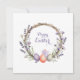 Watercolor Easter Lavender Wreath Eggs Cute Bunny Holiday Card
