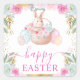 Watercolor Easter Rabbit and Flowers Square Sticker