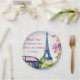Watercolor Eiffel Tower Paris 1st Birthday Party Paper Plate