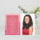 Watercolor swirls of red, pink orange and yellow create a beautiful background that's overlaid with a melon-coloured panel that hold's your event information. Personalise it with your wording and photo. The featured cross and dividers can be dragged to any location, made larger or smaller (+-) or eliminated.