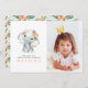 Watercolor elephant little girl photograph birthday party invitation. With delicate floral back ground and stunning elephant illustrations. Part of a collection.