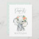 Watercolor elephant little girl birthday party invitation. With delicate green and white polka dot details. Part of a collection.