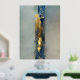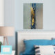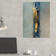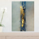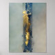 A poster with gold foil print on a watercolor ethereal abstract in blue - and sand tones.