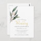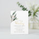 Watercolor eucalypt leaf gold script wedding postcard