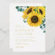 Invite guests to your wedding with this customisable sunflower wedding invitation. It features watercolor floral bouquet of sunflowers and eucalyptus leaves. Personalise this gold foil wedding invitation by adding your own details. This sunflower wedding invitation is perfect for summer and fall weddings.