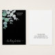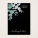 This unique jewelry display card is decorated with watercolor eucalyptus leaves on a black background.