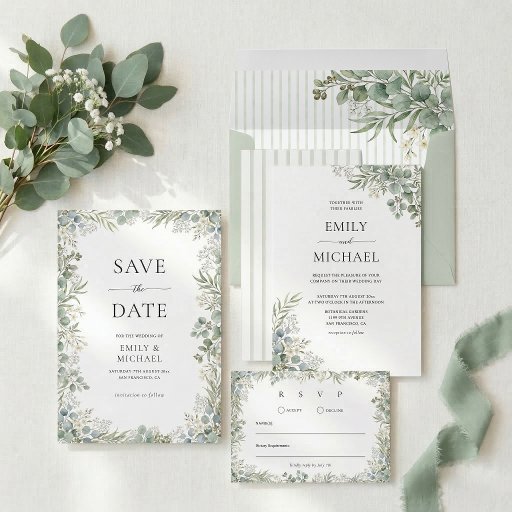 Watercolor Greenery Eucalpytus Wedding StationeryDesigned by Anne Thubron