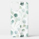 An elegant iPhone case with a green and white watercolor eucalyptus pattern.