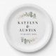 A greenery design with a navy blue background colour with watercolor eucalyptus foliage. The text details and colours can be edited.