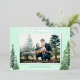 An elegant and classic nature themed holiday design. Watercolor trees on each corner of Christmas card with foil writing and foil frame surrounding photo. Matching stationery like return address labels also available.