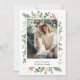 A perfect card for the holidays, featuring your favourite photo and custom text on a white background with watercolor evergreens and berries. Enter your custom text on the template form. Use the "customise further" option to change the font and background colours, or to add photos and text to the back of your card.