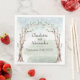 These romantic and enchanting napkins feature a watercolor fairy tale forest theme. The background features a faded blue sky with green grass. A fairytale inspired, tree branch arch is placed in the centre with the names of the couple printed beneath it. You can personalise the napkins to include your own names or other custom text.