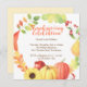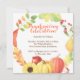 Invite your guests in style with these elegant Thanksgiving invitations. Card features a ring of leaves and fall pumpkins in yellow and orange. Vital party information is set in easy to read fonts. These thanksgiving invitations are square cards and will stand out above the rest.