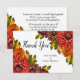 Your loved one's life was beautiful and should be celebrated. Say thank you to friends and family for their thoughtfulness with our original watercolor fall floral design by Holiday Hearts Designs (all rights reserved). Front expression is "Thank You" and "from the family of . . . ". Back contains a two paragraph message: one to express your gratitude and the second to request the celebration of her life. Both can be personalised or modified as desired to achieve your unique expression. They read,