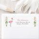 Cute watercolor flamingo and winter greenery Holiday address labels.