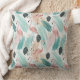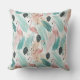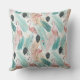A seamless tropical pattern throw pillow featuring elegant pink flamingos with speckled feathers and long, graceful necks. Set against broad brushstrokes in soft teal, mint, blush, and beige, the design mimics abstract palm fronds and foliage. Accented with dark stylised leaves flecked with gold and scattered black dots, this artistic watercolor-style pattern captures a dreamy, modern tropical vibe. Ideal for summer, beach themes, or tropical-inspired aesthetics.